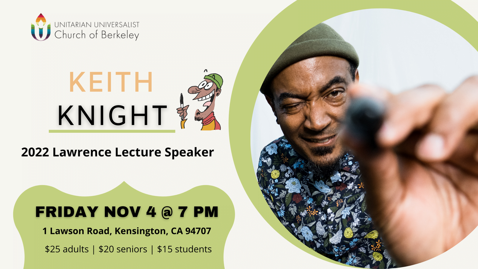 Our speaker for the 2022 Lawrence Lecture is Keith Knight, award-winning cartoonist of “The K Chronicles,” author of “The Knight Life,” musician, educator and co-creator of Hulu TV’s “Woke,” now in its second season. Mr. Knight has been drawing his social and personal commentaries since the 1990’s when he lived in San Francisco, was published in the SF Examiner newspaper, and then went on to national syndication. His life and work were the inspiration for the television show that he writes for and  executive produces.  A member of the speakers bureau “SpeakOut: Voices Changing Lives, ” Mr. Knight covers topics of racial illiteracy, Black history, the media and the importance of social activism.  See more about Keith Knight at KCHRONICLES.