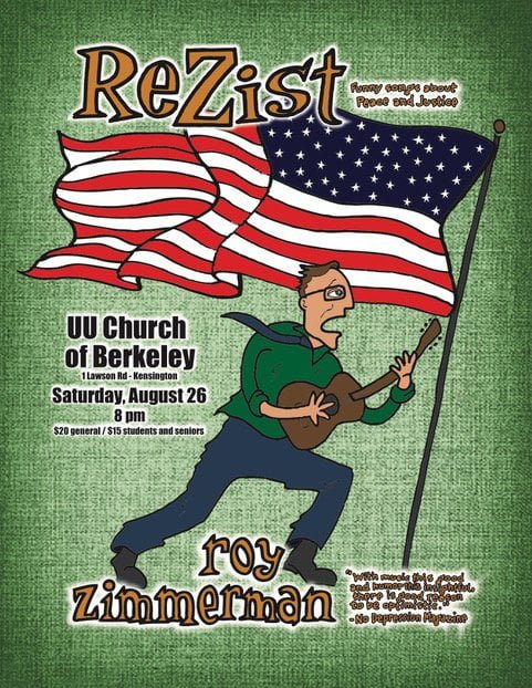 ReZist is ninety minutes of Roy Zimmerman’s original songs, a funny and forceful affirmation of peace and social justice. “Sometimes I think satire is the most hopeful and heartfelt form of expression,” says Roy, “because in calling out the world’s absurdities and laughing in their face, I’m affirming the real possibility for change.”